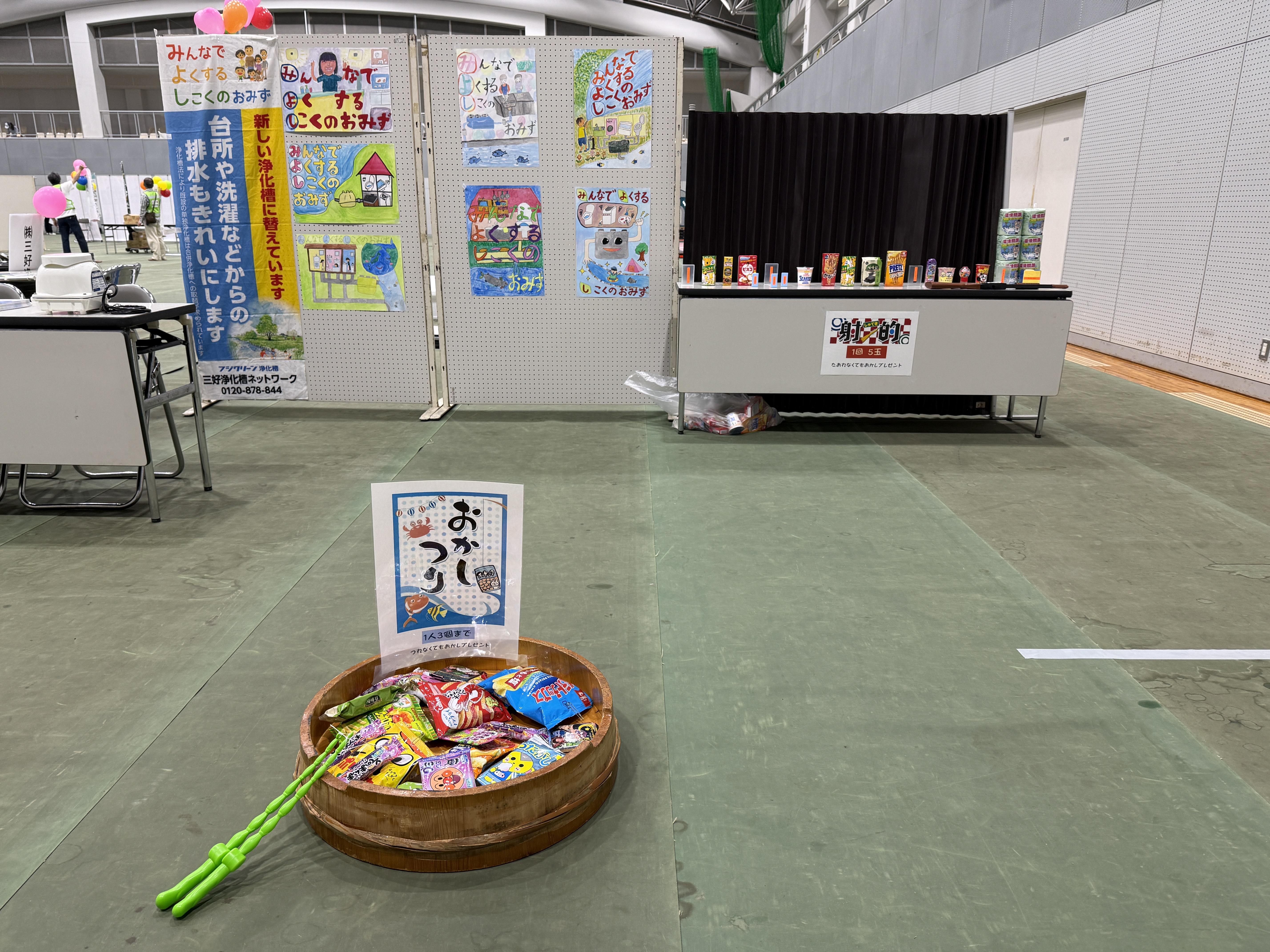三好浄化槽ネットワークは、来場のお子様向けにお菓子釣りと、射的を(^^)